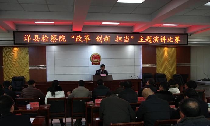 为了深入开展“改革、创新、担当”大讨论活动,树立干警锐意进取、善于创新、敢于担当的精神,不断增强为检察工作科学发展助力和为县域经济社会发展保驾护航的动力。1月16日上午,洋县检察院举办“改革、创新、担当”主题演讲比赛,来自不同检察岗位的18名青年干警走上了演讲台,畅谈在改革创新道路上的心得与体会。